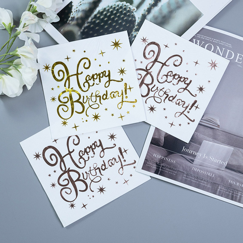 33x33お誕生日おめでとうカクテルナプキンス3ply紙ナプキンホットスタンピングSJ3301