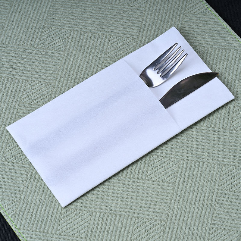 40x40白いエアレイドナプキンは、カトラリー用のポケット付きの使い捨てSJ1103